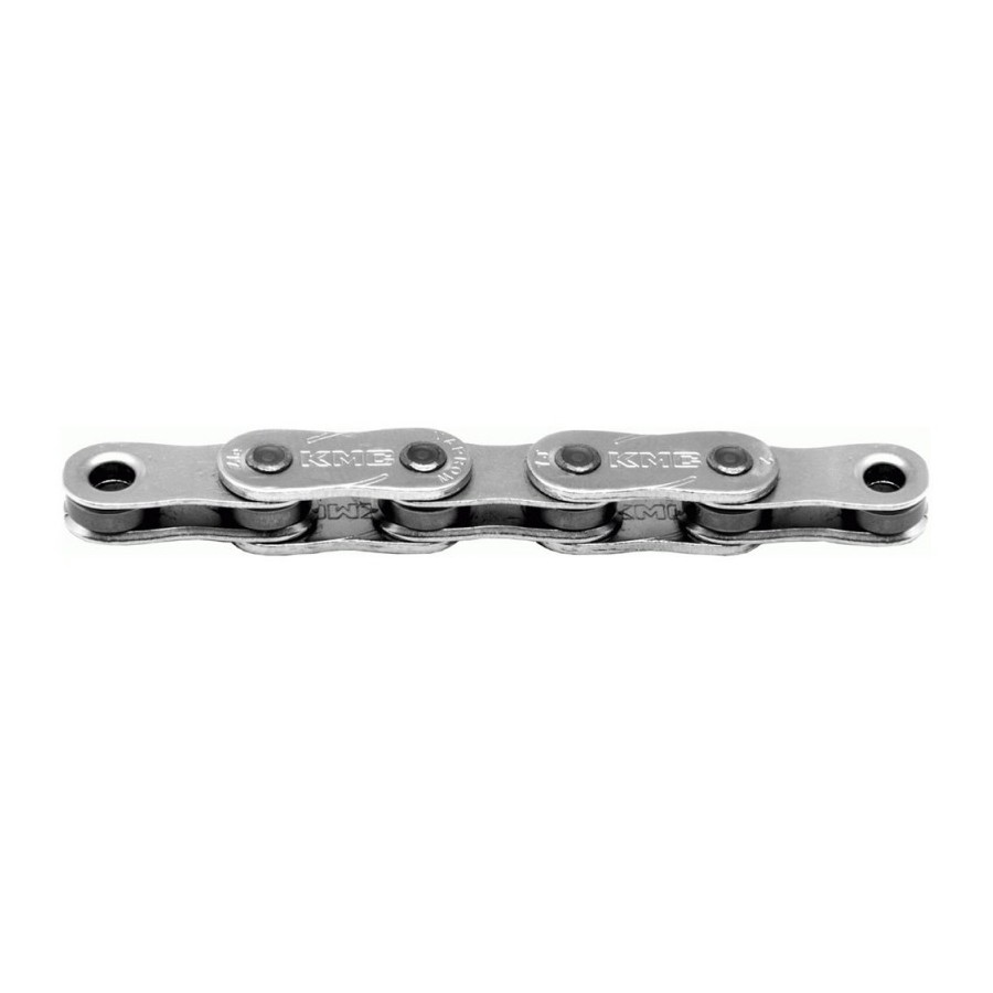 La chaine Z1EHX est en modèle robuste qui est conçu pour être mit à rude épreuve. Convient en BMX Race 3/32 mais aussi pour les vélos à assistance électrique. Elles sont spécialement traitées thermiquement pour prolonger la durée de vie et ont une haute réistance à la traction. Version finition nickel (Silver).