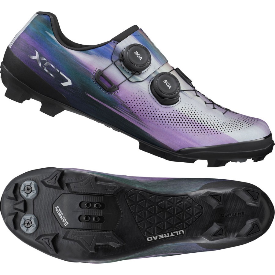 La chaussure de VTT SH-XC703 de Shimano est une chaussure de cross-country performante pour les cyclistes ambitieux. Avec sa coupe précise, une semelle intermédiaire légère et rigide renforcée au carbone et une semelle extérieure ULTREAD XC adhérente, elle offre une transmission maximale de la puissance et un maintien sûr - même dans des conditions de compétition exigeantes.