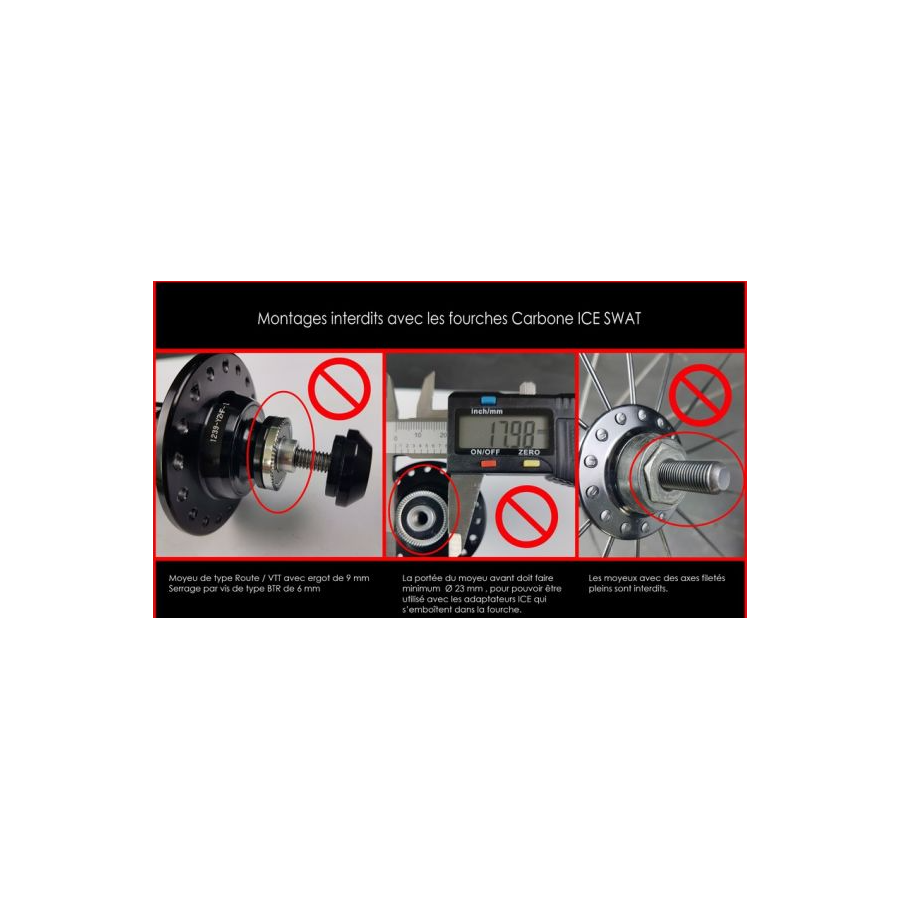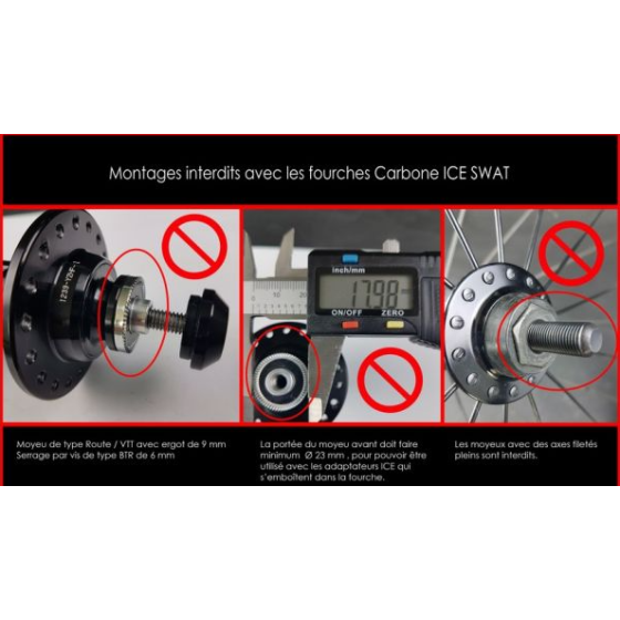 ATTENTION, cette fourche n'est pas compatible avec les moyeux ayant des petits axes de *type Route *