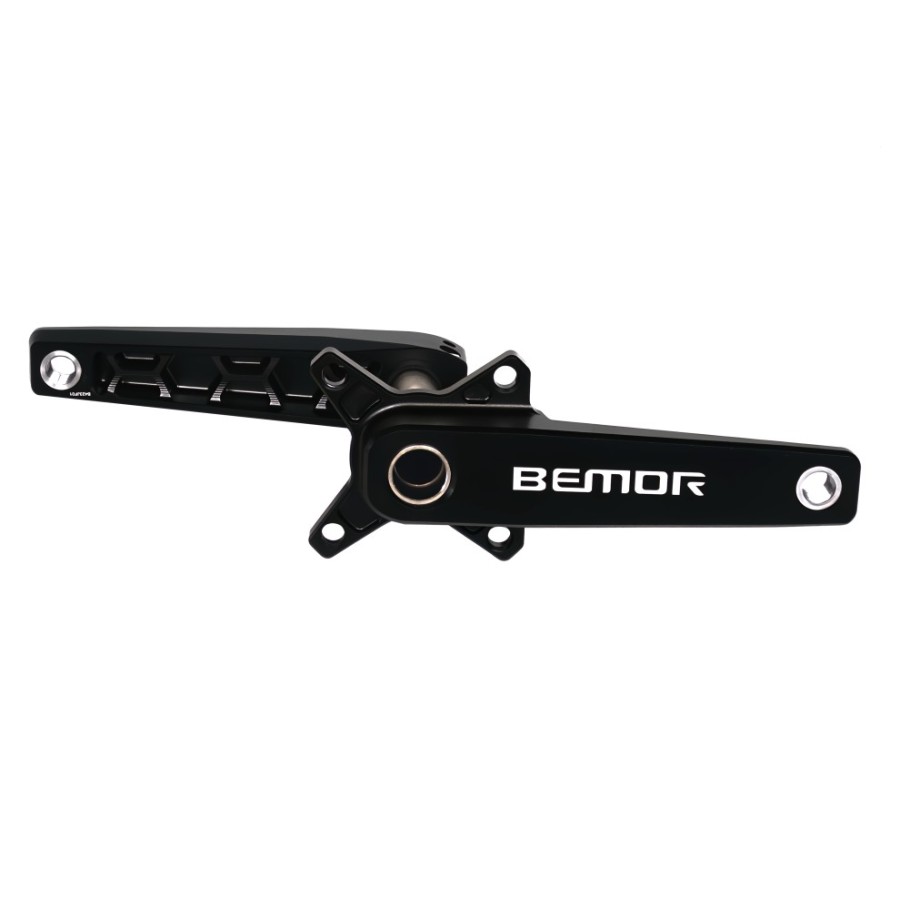 Chez Bemor® nous avons choisi de ne pas fermer la partie arrière des manivelles et de réorganiser la matière ainsi économisée sous forme de structure en nid d'abeille. Ces structures qui relient de manière efficace les trois faces restantes. Cette structure est très connue dans l'ingénierie pour offrir un ratio: quantité de matière/résistance, extrêmement efficace. Cette solution augmente à la fois la rigidité verticale, la résistance à la torsion et la rigidité latérale des manivelles. Même en cas de chute, les manivelles seront bien plus difficiles à déformer qu'avec un pédalier de conception traditionnelle.