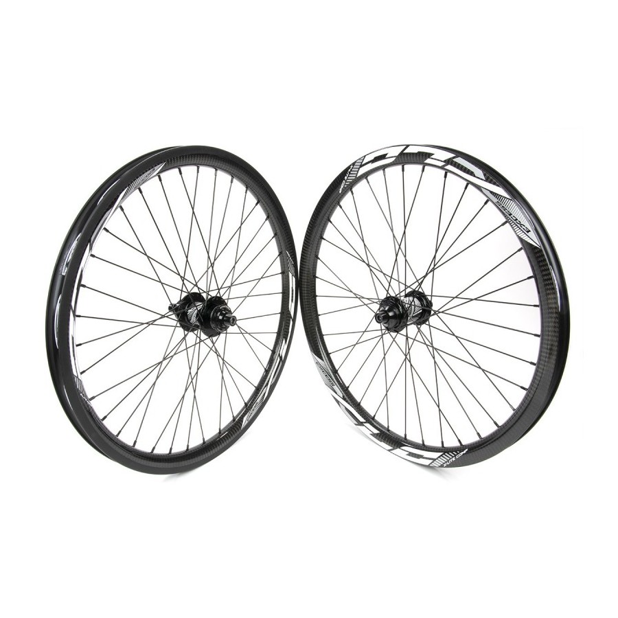 Entièrement repensées et optimisées, les roues haut de gamme EXCESS XLC-3 sont conçues spécialement pour la pratique du BMX Race que ce soit en compétition. Elles sont équipées des jantes EXCESS XLC en fibre de carbone Toray T700 3 couches ainsi que des moyeux EXCESS XLC étanches munies d'un système d'engagement à 3 cliquets à 5 dents sur un rouleau interne à 120 dents vous offrant un engagement efficace en relance ou en sortie de grille. Prêtes à l'emploi pour du freinage V-Brake, Le moyeu arrière offre également la possibilité de le convertir pour une utilisation avec un frein à disque avec son système CenterLock. Le moyeu avant propose également un kit de conversion d'axe avant pour le changer en 20mm.